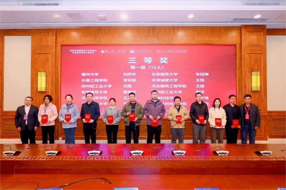 2025年10月31日-11月2日,由教育部高等学校建筑电气与智能化专业教学指导分委员会(以下简称教指委)主办的“第三届全国高等学校建筑电气与智能化专业教师讲课竞赛”在郑州轻工业大学成功举办。本届竞赛吸引了安徽建筑大学、同济大学、西安建筑科技大学、苏州科技大学、北京建筑大学等全国30余所高校的60余名教师同台竞技。我校电气自动化系选派姚宁、张继芳两位老师参赛,凭借出色的教学表现分别荣获一等奖和三等奖,为学校赢得了荣誉。