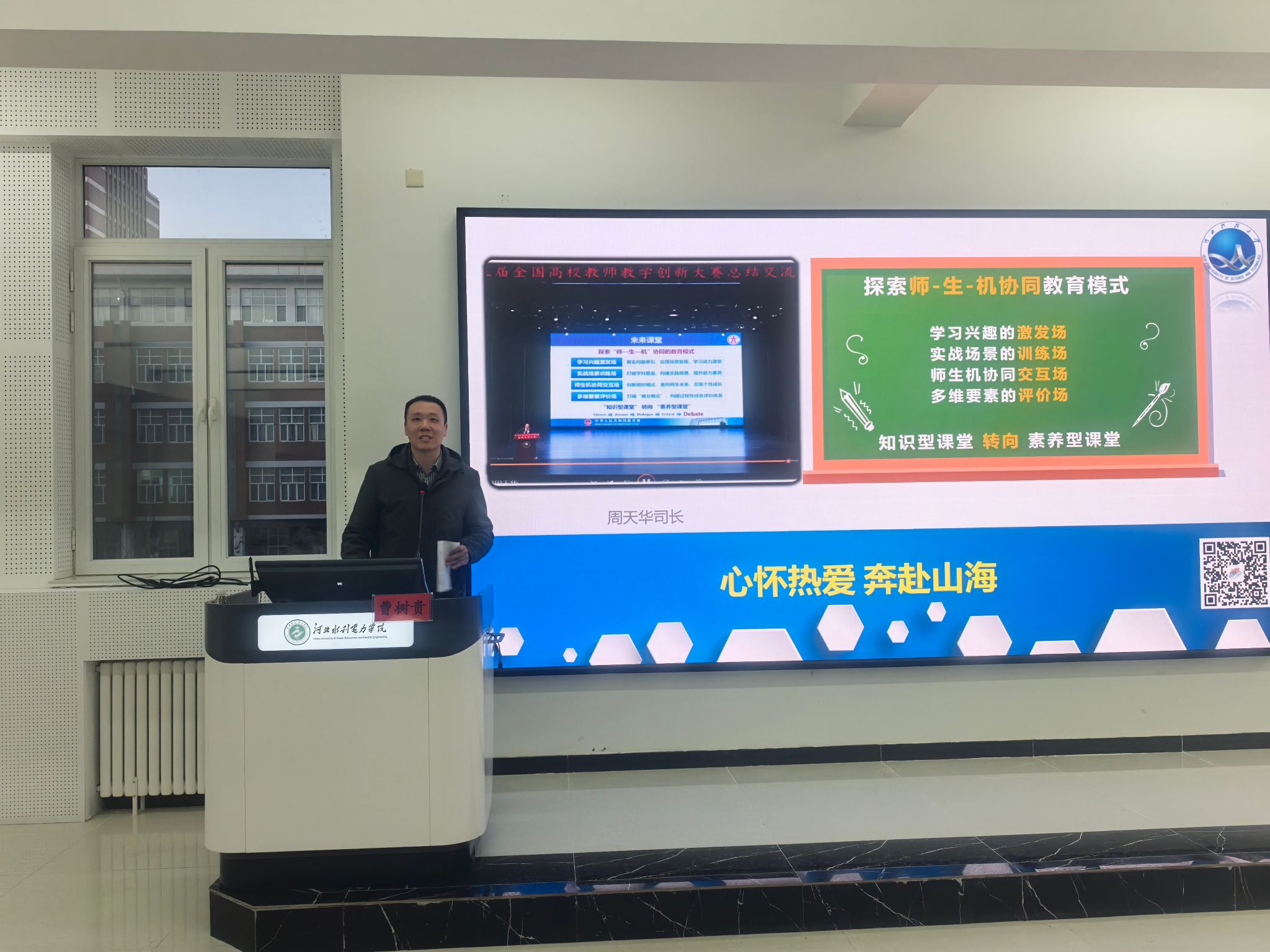 为主动应对人工智能时代对教育形态的深刻变革,探索教学创新的新路径,提升我校教师数智化教学能力与综合素养,推动教育教学质量的内涵式发展,12月5日,教务处和教师培训中心联合举办“数智赋能教学创新实践”专题培训。本次培训特别邀请了南开大学赵宏教授、河北科技大学曹树贵教授担任主讲嘉宾。培训由教务处副处长李岩主持,全校130余名教师参加了此次培训。