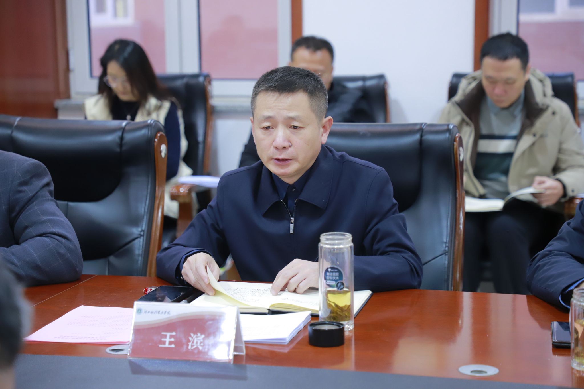 王滨对教材选用工作提出三点要求:一是坚决落实“马工程”教材选用要求,凡属“马工程”相关课程,必须选用指定教材,不搞变通、不打折扣。二是坚决精选高水平教材,通识课、必修课、学科基础课及专业核心课必须瞄准国家级规划教材、行业标杆教材、权威经典教材,让学生接触前沿知识、接受一流教育。三是优化实验实训类课程指导资源,实验实训类课程可适度使用由我校教师编写、贴合我校实验条件、符合学校人才培养要求的指导书、讲义及自编教材,让教材成为培养学生实践能力的“导航图”。